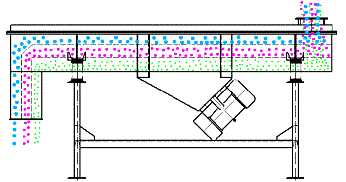 振動(dòng)電機(jī):通過(guò)振動(dòng)電機(jī)激振力的作用使物料在篩面上運(yùn)動(dòng)。