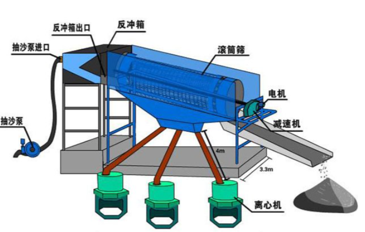 由鏟車(chē)上料,通過(guò)料斗上安裝的小振動(dòng)器振動(dòng)把料漏進(jìn)滾筒篩沙機(jī),物料進(jìn)入滾筒后,通過(guò)網(wǎng)孔進(jìn)行物料的分離,成品料會(huì)漏下來(lái),經(jīng)過(guò)皮帶機(jī)傳送出來(lái),廢料從滾筒尾部漏出。